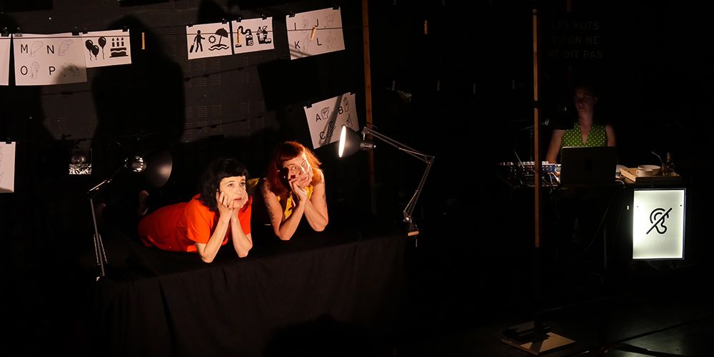 Trois interprètes, dont une comédienne sourde, nous initient aux signes et à la culture sourde. Elles nous confient les secrets et petits mensonges de ce huis-clos familial et lèvent de nombreux tabous sur « le pays des sourds » et les difficultés d'un enfant « entendant ». Ce spectacle bilingue dit la fierté comme la honte, la beauté du monde du silence comme la violence des mots qu'on ne dit pas.