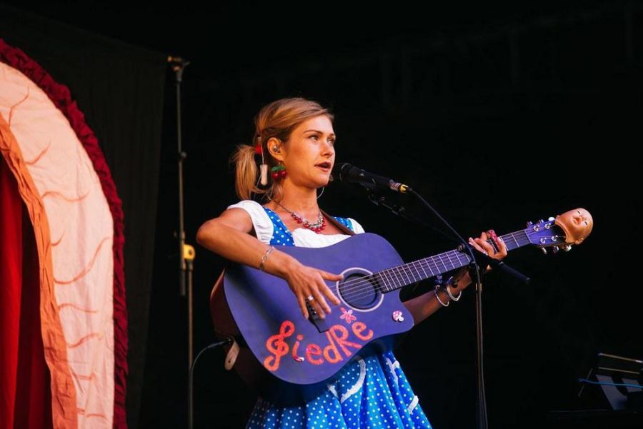 GiedRé, ce qu’elle aime bien dans la vie, c’est écrire des chansons rigolotes sur des trucs pas très rigolos. Et ce qu’elle aime encore plus, c’est chanter ses chansons rigolotes-sur-des-trucs-pas-rigolos sur scène, car les lumières sont très fortes et ça lui« donne dix ans de moins ». Du moins c’est ce qu’elle croit, mais les gens ne sont pas dupes.